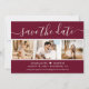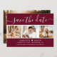 Elegante foto de un boda burdeos ahorra la tarjeta de fecha con un moderno tipo de letra de guión y un collage de fotos. Personalice fácilmente esta tarjeta con sus imágenes y detalles del boda, incluido un sitio web del boda si procede.
