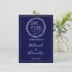 Un tema náutico mínimo salva la tarjeta de fecha. Una cuerda blanca corona sobre un fondo azul marino con un marco dorado y los nombres de la novia y el novio en un guión elegante. Parte de la suite Boda Mínima Nautical Sailboat.