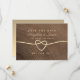 Boda de madera sencilla, elegante, moderna y rústica ahorra la invitación de fecha con corazón de cuerda dorada y escritura de caligrafía de moda. Ideal para cualquier temporada.