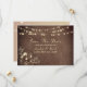 Elegante, vintage, invitación de boda de madera rústica con encaje floral dorado y luces de cadena para guardar la fecha.