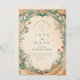 Un elegante diseño Art Nouveau boda con un romántico marco floral abovedado en cálidos terracota, corales y tonos verdes mullidos. Con intrincadas hojas ornamentales y tipografía clásica, esta pieza aporta un nostálgico toque europeo perfecto para bodas refinadas al aire libre o de destino. La composición combina suavidad natural con encanto intemporal.
