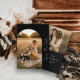El diseño moderno y minimalista presenta una foto de marco abovedada contra un fondo negro con un delgado guión caligráfico escrito a mano y una pantalla de 2 fotos. Personalizar fácilmente tu información importante junto con tus fotos favoritas en la parte delantera y trasera. Ideal para cualquier temática boda moderna.