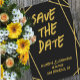 Elegante boda minimalista salva la fecha con marco geométrico y tipografía clásica