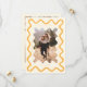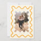 Extraño y caprichoso salvan la tarjeta de fecha con un marco ondulado a mano alrededor de la foto. El color es amarillo.