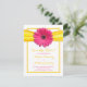 Anuncio de boda con flor de margarita gerbera rosa y cinta amarilla para guardar la fecha. Los colores en esta tarjeta de guardar la fecha de boda de margarita son amarillo soleado, rosa intenso y blanco. Esta tarjeta está actualmente personalizada para guardar la fecha, pero podría funcionar bien para una variedad de ocasiones especiales.