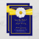 Tarjeta de aviso de boda con margarita Shasta blanca, lazo amarillo y fondo azul marino. Los colores en esta tarjeta de aviso de boda de margarita son azul marino claro o azul real, amarillo dorado y blanco. Anuncio de boda de margarita amarilla, blanca y azul marino.