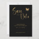 Reserva La Fecha Boda de Mariposa Brillante con Letra Negra y Dorad