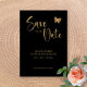 Anuncie su día especial con nuestra impresionante tarjeta "Black & Gold Script with Glitter Butterfly Wedding Save the Date". Este elegante diseño presenta un sofisticado fondo negro adornado con una lujosa tipografía dorada y moderna tipografía de acento dorado para personalizar. Delicados motivos de mariposas en brillo dorado añaden un toque de romance y brillo. Personalice con sus nombres, fecha de la boda y detalles para crear una invitación única y memorable que establece el tono para una celebración lujosa. Perfecto para parejas que buscan un anuncio de boda glamuroso y elegante que cautivará a sus invitados. Haga que cada detalle de su boda sea inolvidable con este exquisito diseño.