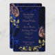 Esta elegante boda redondeada salva el anuncio de la fecha con un hermoso azul real, brillando oro ornamentado y delicadas mariposas rosas es una elegante adición a tu evento.