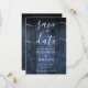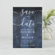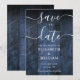 Esta elegante tarjeta de boda de boho de madera rústica y azul para guardar la fecha se puede personalizar con su información en la tipografía de moda. Diseñado por Thisisnotme©