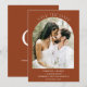 Disfruta de este moderno monograma de boda de terracota naranja quemada. Monograma de boda con una foto boho. Por favor, guarda la fecha. Simplemente cambia los detalles para adaptarlos a tus necesidades.