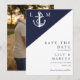 Reserva La Fecha Boda de monograma náutico azul marino Foto
