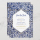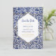 Este diseño está decorado con cuadros rústicos portugueses. El texto boda está enmarcado con elegancia con una forma geométrica de color blanco y dorado. La única boda azulejo floral azul y blanca ahorra el diseño de la tarjeta de fecha con elementos modernos. También hay disponibles invitaciones de boda coincidentes y otros artículos de papelería.