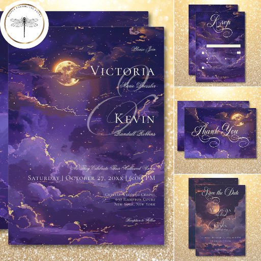 Dark Moody Purple & Gold Moonlit Clouds WeddingDiseñado por Kathe Santillo