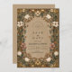 Celebra tu amor con la elegancia eterna. Este diseño boda de inspiración vintage presenta delicados florales de marfil y rubor entrelazados con viñas doradas y detalles botánicos cálidos. El intrincado marco y el fondo de la tierra crean un ambiente romántico e inspirado en la naturaleza, perfecto para bodas rústicas, de jardín o de otoño. Personaliza fácilmente con tus propios nombres, fechas y detalles de la ceremonia.