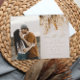 Una romántica y moderna boda de otoño con fecha de guardado realista con foto con un ramo floral neutro seco en tonos de trigo, ocre y herrumbre. Haga clic para editar y personalizar este diseño con su foto y detalles.