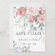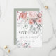 Hermosas flores modernas elegantes rosadas delicadas y de color crema con vegetación suave de acuarela. Peonías rosadas. Parte posterior de la tarjeta verde pastel suave. Este “Save the Date” elegante y romántico y una tarjeta para todas las estaciones. Más allá de la sofisticación. Una tipografía simple y chic también se agrega para terminar este recordatorio de boda en una presentación más allá de lo hermoso para todos sus invitados. Absolutamente impresionante.