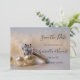 Fije un tono elegante para su ceremonia matrimonial con los elegantes Anillos de Diamante y Boda de Perlas Guardar la Tarjeta de Invitación de Fecha. Este bonito nupcial de personalizado mantiene la invitación de fecha con una fotografía de primer plano de un anillo de compromiso de diamante redondo y con un collar de perlas blancas y un fondo gris claro borroso.