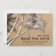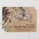 Boda tropical de la playa del árbol de palmeras Guarda la fecha en el fondo del papel estilo de imitación Kraft. - cerca del Beach Bum
