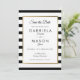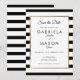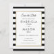 Con un clásico fondo de rayas negras y blancas, esta elegante tarjeta de aviso de boda cuenta con un borde de lámina de oro falso que enmarca los detalles de su aviso de boda en tipografía chic. Diseñado por Thisisnotme