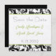 Invitaciones de boda con patrones florales de damasco en negro y blanco vintage moderno con borde verde manzana. Perfecto para temas de bodas rococó barroco, renacimiento medieval, art déco art nouveau, Gatsby de los felices años 20, bodas victorianas o temas de boda de granja elegante.