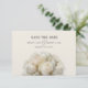 Una boda salva la tarjeta de fecha con una imagen de rosas blancas en el fondo. Personaliza el texto con detalles de tu ocasión.