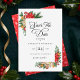 Anuncie su gran día con nuestra Boda de Vacaciones de Navidades de la Foliage de Invierno Guardar la Tarjeta de Fecha. Con un elegante entorno de temporada y un follaje festivo, este diseño es perfecto para bodas de vacaciones y bodas de invierno. Disponible como tarjetas impresas y descarga digital.
