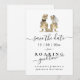 Esta divertida invitación de "Guarde la fecha" de la boda de dinosaurios del Jurásico es perfecta para parejas que buscan agregar un toque divertido y temático de dinosaurios a su anuncio de invitación de boda. Con encantadoras ilustraciones de acuarela de una divertida novia y novio T-Rex en tonos marrones beige sobre un fondo blanco elegante, este diseño de la era Jurásica captura el espíritu juguetón de su gran día. La tipografía moderna agrega un toque de elegancia mientras mantiene un ambiente ligero. Fácil de personalizar con sus nombres y fecha de boda, esta invitación única seguramente deleitará a sus invitados. Arte original de la talentosa Catherine Sweetman. ¡Perfecta para un buen momento!