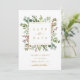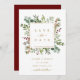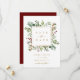Esta tarjeta plana de guardar la fecha de la boda cuenta con eucalipto pintado a la acuarela, hojas verdes, bayas rojas, ramas de pino y un marco cuadrado dorado falso con un fondo rojo en la parte posterior. Para una personalización más avanzada de este diseño, haga clic en el enlace "Personalizar más". También están disponibles artículos coincidentes.