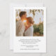 Elegante boda ahorra la tarjeta de fecha con un diseño simple y mínimo con "guardar la fecha" en una moderna caligrafía escrita a mano y tus nombres y fecha en una fuente serif clásica sobre tu foto favorita. La parte posterior tiene una segunda imagen junto con su mensaje personalizado. El tema de color es blanco y negro y puede cambiarse en la herramienta de edición de diseño.