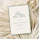 Crea tus propias invitaciones de boda personalizadas con un estilo lujoso de dinero antiguo. Agrega tus detalles personalizados anunciando tu día de boda en tipografía elegante y atemporal con diseño en color verde sauce e marfil.