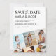 Esta tarjeta de collage de fotos con tipografía moderna y sencilla para guardar la fecha es perfecta para el anuncio de su boda. Esta invitación para guardar la fecha presenta un collage de 6 fotos y un color verde salvia sólido en la parte posterior.