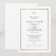 Esta Clásica Boda Dorada Elegante Guarde la Fecha es simple y versátil. Cuenta con un diseño blanco y negro chic con un monograma, detalles de escritura, un marco dorado simple y texto formal editable. Haga clic en el botón de edición para personalizar este diseño.