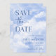 ¡Esta es una invitación de Boda Elegante Soñadora con Nubes Brillantes Azul Blanco para Guardar la Fecha!