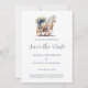 Tarjeta de guardar la fecha de boda en carruaje elegante tirado por caballos. Nos casamos, así que por favor guarden la fecha para una celebración elegante mientras intercambiamos votos rodeados de los ricos tonos de una boda romántica. Nuestra boda contará con un hermoso carruaje tirado por caballos, tirado por un hermoso caballo blanco en colores azules románticos, todo acentuado por el encanto atemporal de la caligrafía. Acepten el calor y la elegancia de la temporada con nosotros en este día especial.