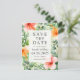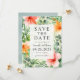 Fije el tono de su boda tropical con este vibrante hibisco acuático y follaje tropical Guardar la tarjeta Date. Es una elección perfecta para bodas en la playa, bodas de destino, bodas tropicales y más. Personalice con sus nombres, fecha de boda y ubicación editando el texto de ejemplo en la plantilla de diseño fácil de usar. ¡Aloha!