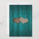 Tarjetas de boda personalizadas de boda en frasco de mason teal rústico para guardar la fecha, con un frasco de mason y corazones de arpillera contra un fondo de madera rústica. Personalice fácilmente en línea. Artículos coincidentes disponibles para complementar estas tarjetas de guardar la fecha de boda teal.
