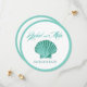 Esta moderna tarjeta Save the Date es redonda y cuenta con una magnífica concha de vieiras acuáticas sobre un fondo blanco y un borde acuático. Productos a juego disponibles. PARA VER TODA LA COLECCIÓN, VISITE: glamprettyweddings.com. Disponible en 7 colores glamóticos: rosa, lila, agua, azul menta, amarillo, melocotón, frambuesa. Use el botón "Personalizar" para personalizar con su propio texto. Para preguntas o solicitudes de personalizados, envíe un correo electrónico a cheryl@glamprettyweddings.com/contact. Diseño original de "Scallop Seashell Beach" de Cheryl Daniels © 2014.