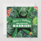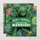 Celebre su boda tropical o de destino con esta plantilla fácil de actualizar. Simplemente complete el nombre, edad, fecha, hora, ubicación de la fiesta y cualquier nota de RSVP u otra información. Cambie de "Marc y Anthony se casan" a "los Willoughby están organizando la Navidad". Disponible en muchos diseños para cada ocasión. El encantador diseño presenta una pintura de acuarela inspirada en las junglas de la selva tropical y plantas y flores Monstera hawaianas en la naturaleza.