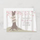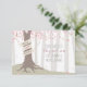 Una boda al aire libre salva la fecha con un ilustracion de un árbol en el bosque con hojas rosas y raíces expuestas con un cartel envuelto alrededor del baúl para los nombres de la pareja.