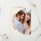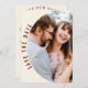 Tarjeta de aviso de boda minimalista elegante color burdeos y rojo con corona botánica, invitación de aviso de boda de otoño simple y clásica. Ideal para boda moderna clásica, boda vintage y boda formal. Explora la colección completa para encontrar artículos que coincidan. Haz clic en el botón de edición para personalizar este diseño. El diseño presenta una foto de la pareja en la parte delantera y una corona botánica en la parte trasera con foto