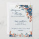 Reserva La Fecha Boda Floral Azul Aciano y Cobre