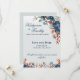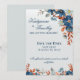 Este hermoso diseño personalizado presenta flores azules y de color cobre sobre un fondo azul claro. Tarjeta de guardar la fecha de la boda y tarjeta de invitación y agradecimiento coordinadas.