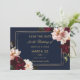 Reserva La Fecha Boda floral azul marino con rubor burgundy oscuro