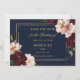 Reserva La Fecha Boda floral azul marino con toque de burgundy oscu