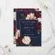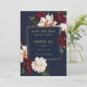 Personalice fácilmente y rápidamente este elegante aviso de boda. Simplemente haga clic en el botón Editar usando herramientas de diseño para editar el texto, cambiar las fuentes y los colores de las fuentes. Con hermosas flores de peonía de color rosa y burgundy realistas sobre un fondo azul marino oscuro. Artículos coincidentes disponibles en la tienda. (c) Somerset Fine Paperie