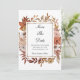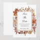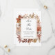 Un hermoso diseño floral de otoño en terracota, flores de óxido y naranja quemada. Agregue sus nombres y fecha y lugar de la boda, todos los campos se pueden editar.