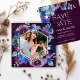Diseño de boda minimalista elegante moderno magenta violeta con flores en azul púrpura, simple y clásico invierno boda guardar la fecha invitación. Ideal para boda moderna clásica, boda vintage y boda formal. Explore la colección completa para encontrar artículos que coincidan. Haga clic en el botón de edición para personalizar este diseño.