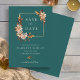 Reserva La Fecha Boda floral de acuarela de otoño teal
