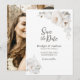 Esta elegante boda floral blanca de invierno, que ahorra la fecha, está diseñada para parejas que buscan sofisticación y belleza intemporal al anunciar su día especial a sus seres queridos. Tu foto favorita de ti y de tu amada se puede incluir en el reverso, haciendo de esta fecha una invitación verdaderamente única mientras traes alegría a los buzones de tus invitados y evoca emoción por tus próximos nupcias con esta fecha de reserva.